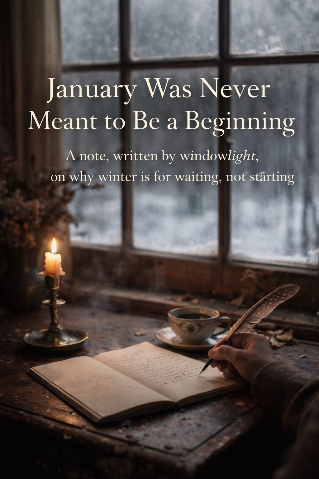The room is quiet in a way that only January insists upon. Outside, the trees are stripped back to bone, the light arrives late, slants low, and leaves early again, as if it has somewhere else to be. The world feels held, paused, unfinished.